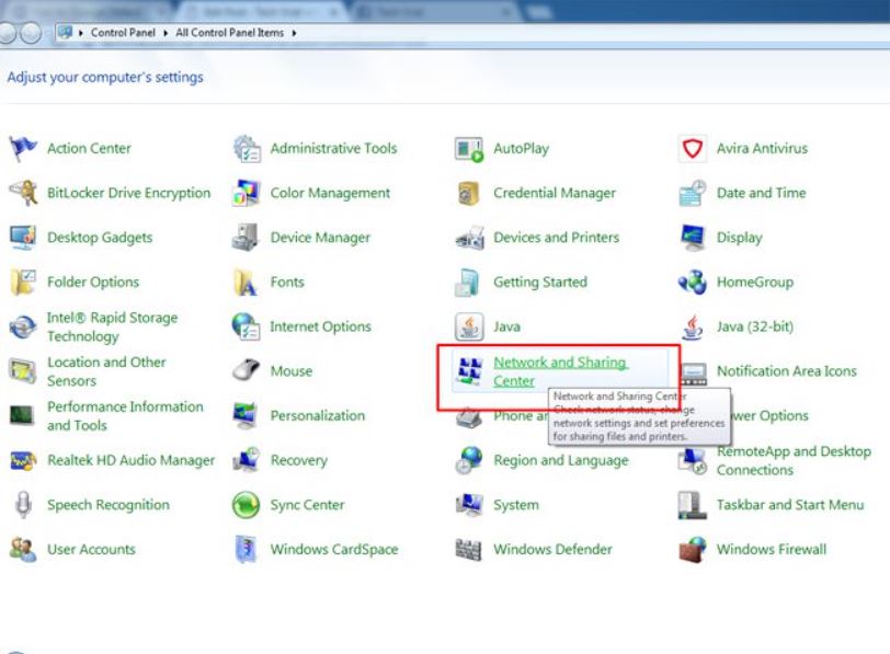 - Bước 1: Trước tiên, bạn truy cập vào Control Panel trên máy tính, click vào ô Network and Sharing Center như hiển thị, tiếp theo nhấn chọn Ethernet.