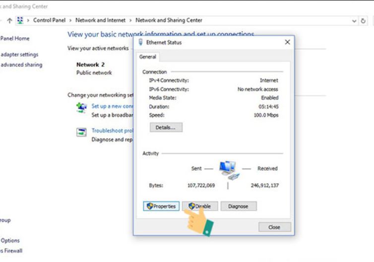- Bước 2: Hiển thị trên màn hình bảng cài đặt bạn chọn vào ô Properties, nơi đây sẽ cho phép bạn thay đổi DNS máy tính.