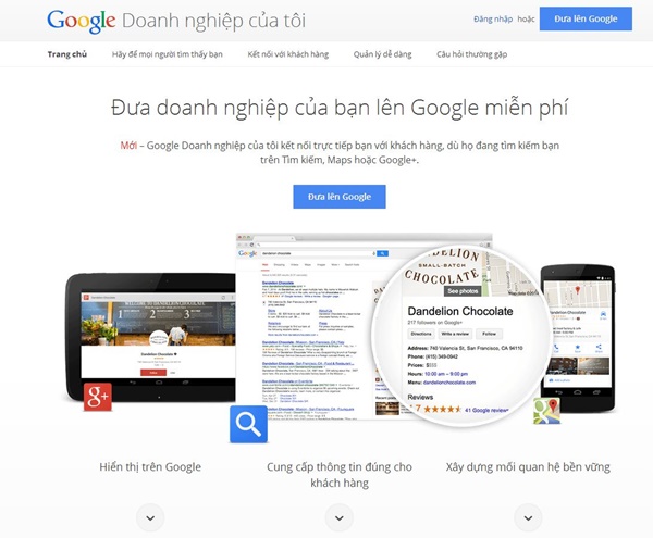 - Bước 1: Bạn hãy truy cập địa chỉ: https://www.google.com/business/placesforbusiness/ -> Chọn mục ĐƯA LÊN GOOGLE