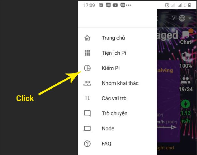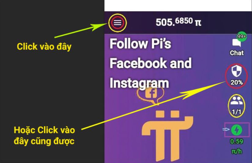 - Bước 3: Cách tạo vòng tròn bảo mật Pi Network bằng cách click vào kiếm Pi.