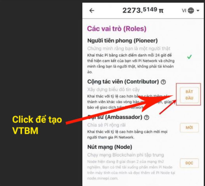 Sau 72 giờ đào Pi, bạn có thể kích hoạt VTBM Pi Network. Vòng kết nối này bao gồm những người mà bạn có thể tin tưởng và quyết tâm đào Pi đến cùng cũng như không làm ra những hành vi gian lận nào trong khi hợp tác.