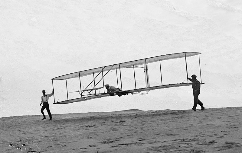 2 anh em nhà Wright chế tạo ra 3 chiếc cánh lượn và thử nghiệm hơn 100 chuyến để nghiên cứu vào 1900. Đến 2 năm sau họ thành công chế tạo được máy lượn có bánh lái.