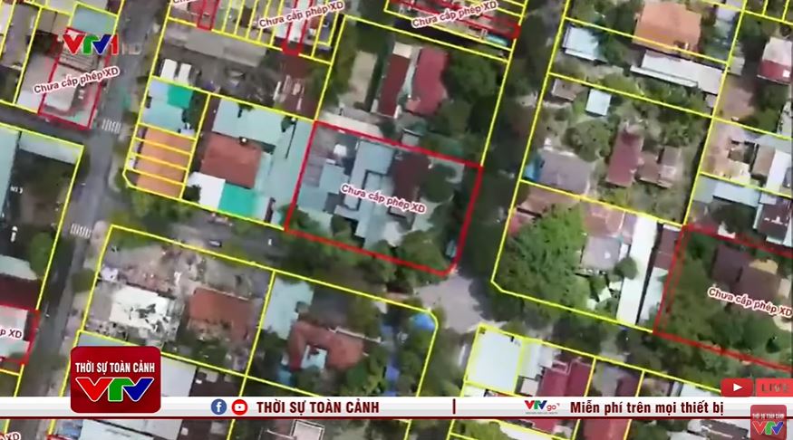 Từ đó có thể thấy ngay những thửa chưa được cấp phép xây dựng như các khoanh màu đỏ. Trí tuệ nhân tạo sẽ phân tích, giải đoán ảnh chụp dưới các chu kỳ để tự động phát hiện ra công trình trái phép.